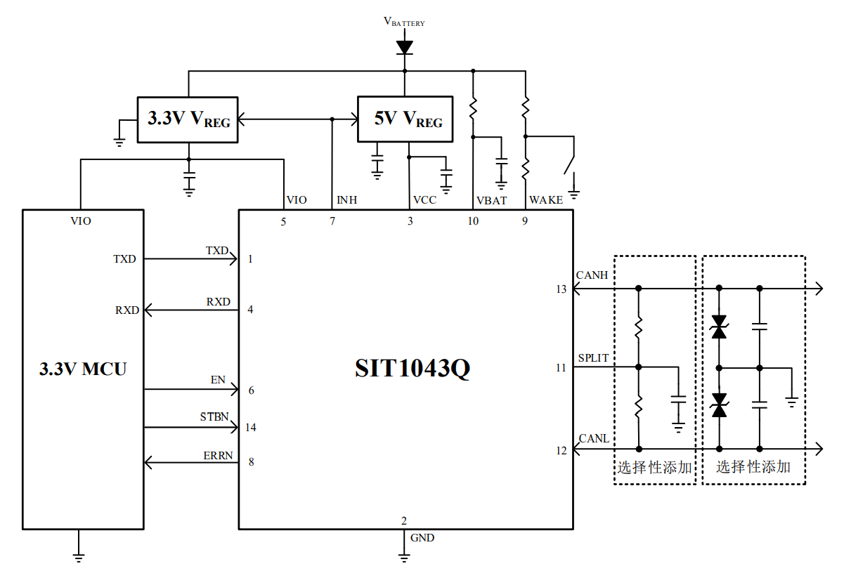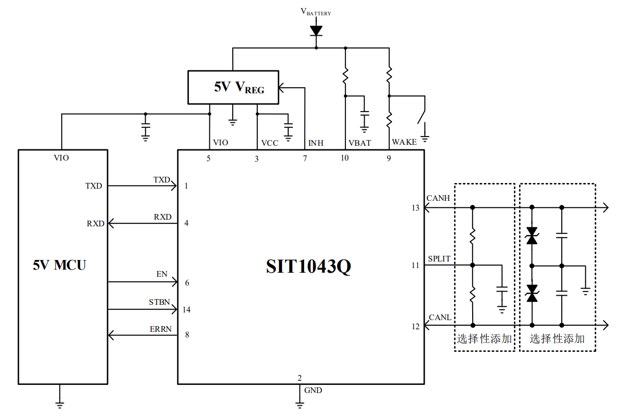 图6:SIT1043Q典型5V与3.3V系统控制应用图