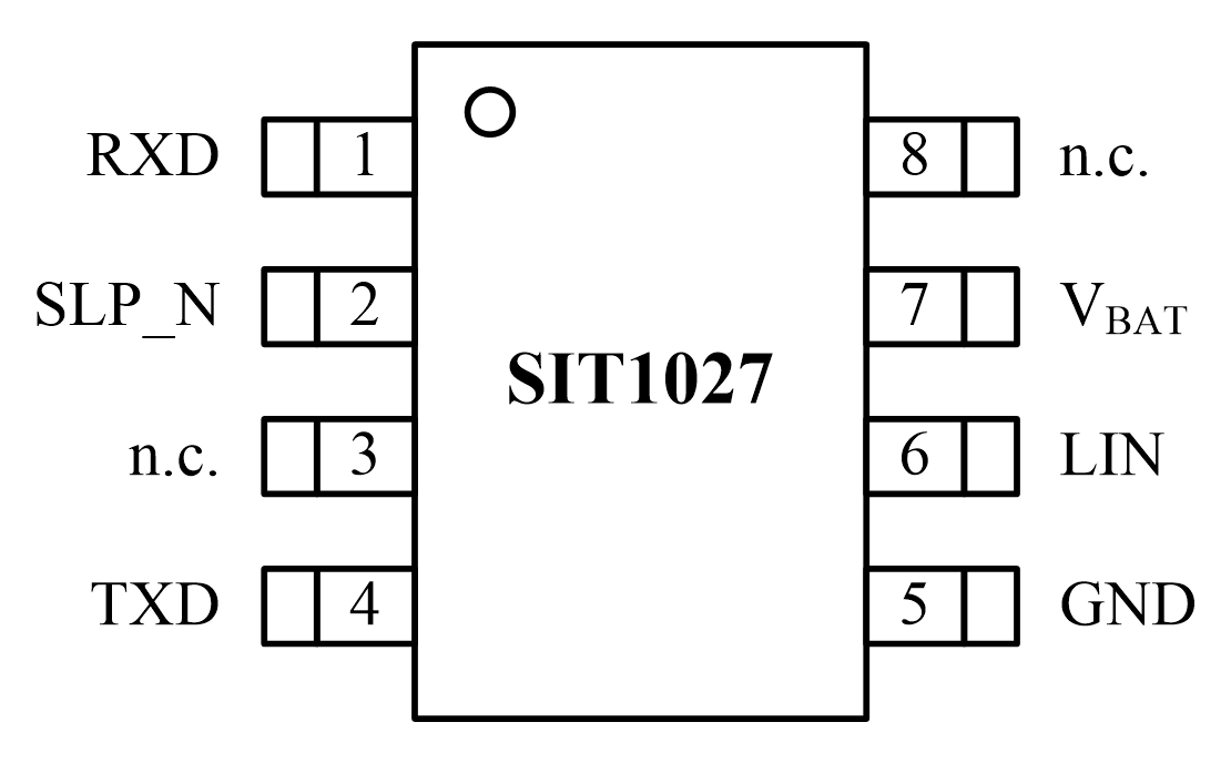SIT1027是一款国产本地互联网络LIN收发器芯片,符合LIN 2.0、LIN 2.1、LIN 2.2、LIN 2.2A、ISO 17987-4:2016 (12V) 和SAE J2602标准。主要适用于使用1kbps至20kbps传输速率的车载网络。SIT1027顺利获得TXD 引脚控制 LIN 总线的状态,可将协议控制器的发送数据流转换为具有最佳压摆率和波形整形的总线信号,以最大程度地减少电磁辐射发射(EME)。LIN总线输出引脚具有内部上拉电阻,仅当用作主机节点时,才需将LIN总线端口顺利获得一个与二极管串联的外部电阻上拉至VBAT。SIT1027顺利获得LIN引脚接收总线上的数据流,并由接收器的输出引脚RXD将数据传送到外部的微控制器。
