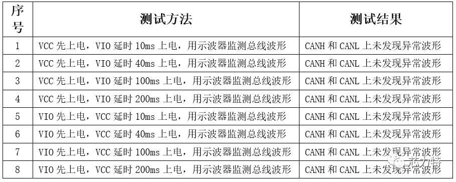 另外,当VCC与VIO不同时上电,在芯片开始工作的瞬间,SIT1051T/3也不会对总线造成干扰,具体测试如下: