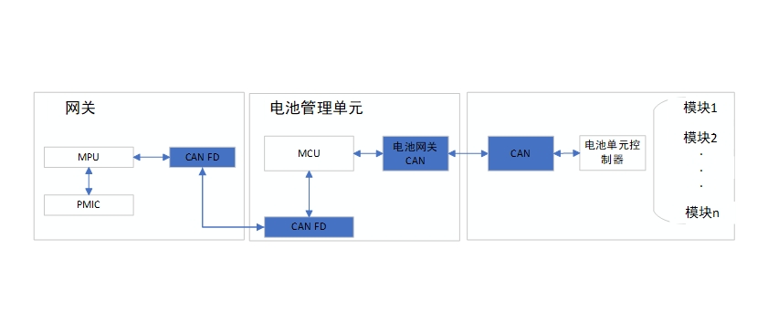 网关顺利获得CAN FD芯片与电池管理单元进行通信。